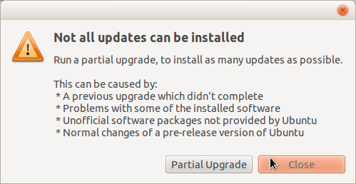 I get the same partial install error in my Ubuntu 12.04LTS 64bit installation. I have not done any updates there.