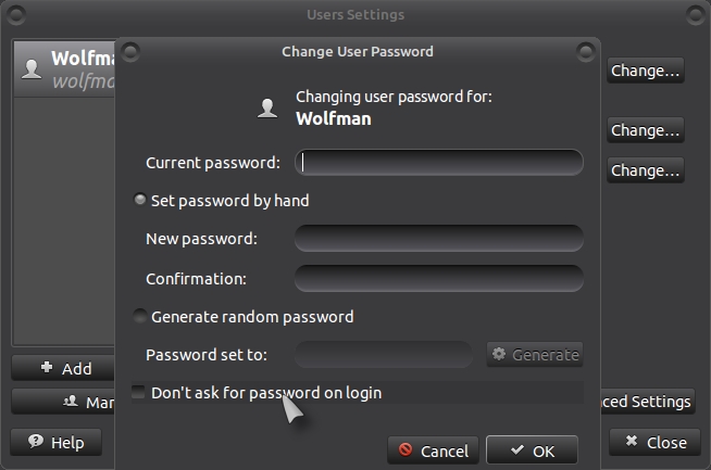 System settings > System > Users & Groups > Password > Change > Don't ask for password on login: