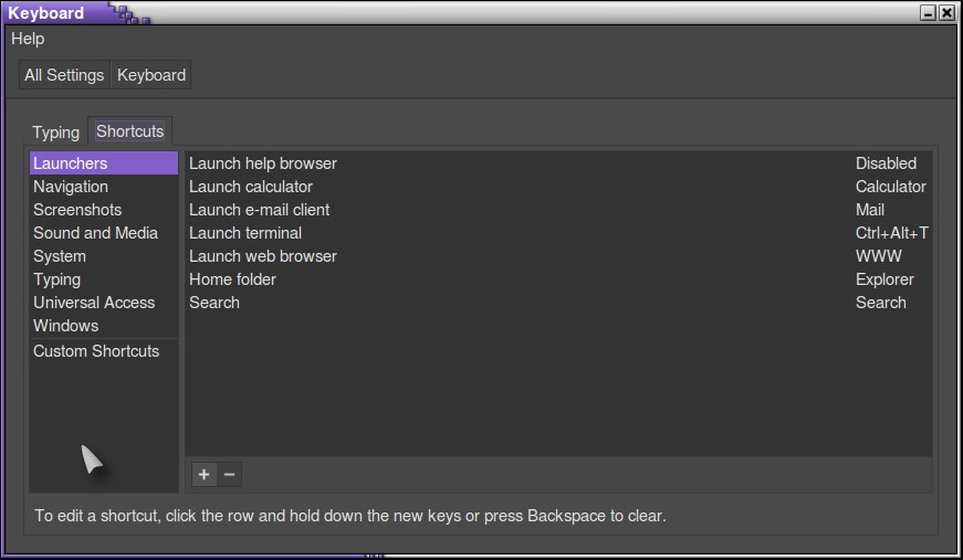 I'd also like to know how to view list of keyboard short cuts. In Ubuntu, you'd press and hold the alt key and a pop-up would rise listing them all.