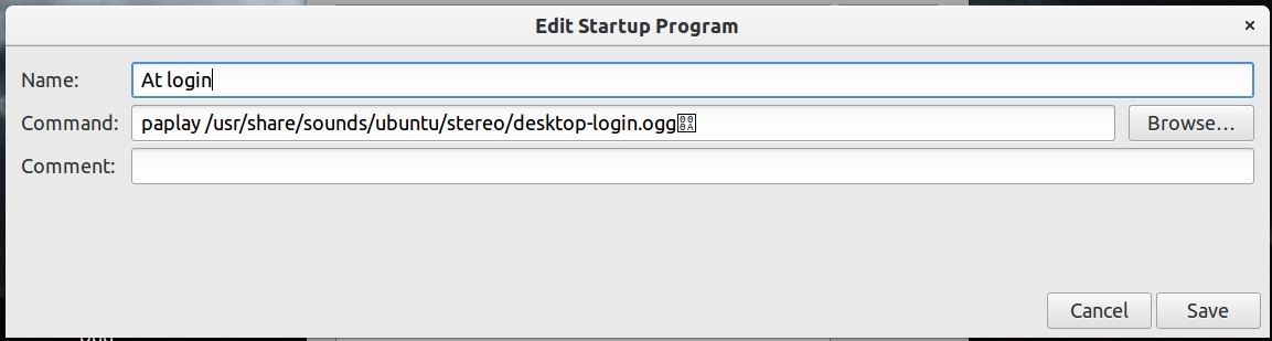 Notice that I named this program 'At Login' notice that it is now at the top of the list and so will be the first application to launch - you could call it whatever you like so long as it starts with the first letter of the alphabet - that is how I spotted the issue of it not playing when using another members solution for Mint and Mate.