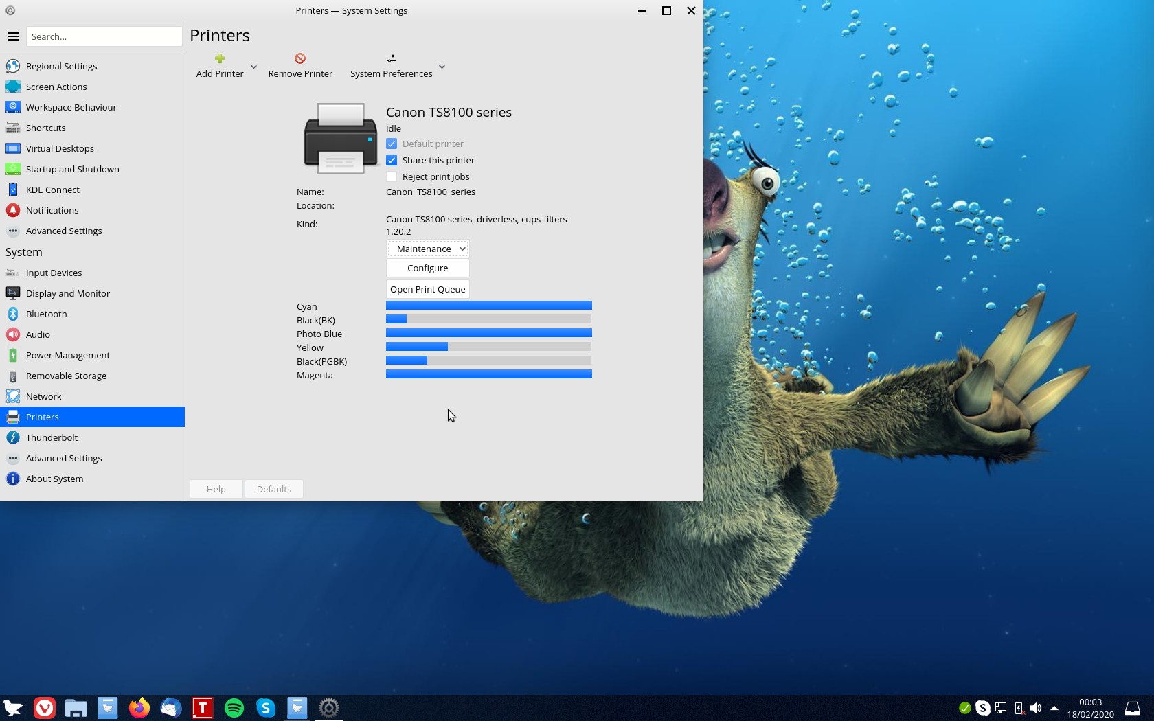 Then the next time you send something to print you should get your ink levels showing (apologies screenshot is of FerenOS!)