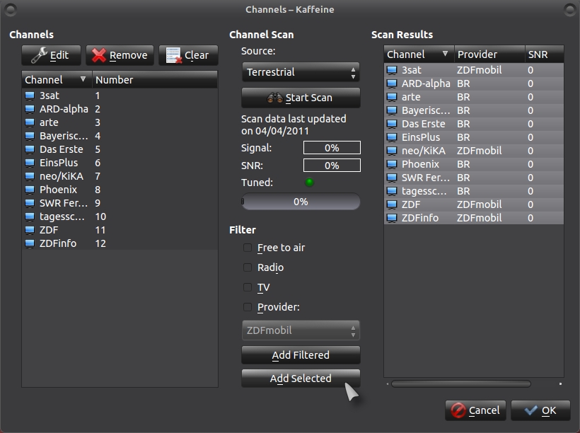 Once the scan is done, mark all channels that have been found and then click on "**Add Selected**":