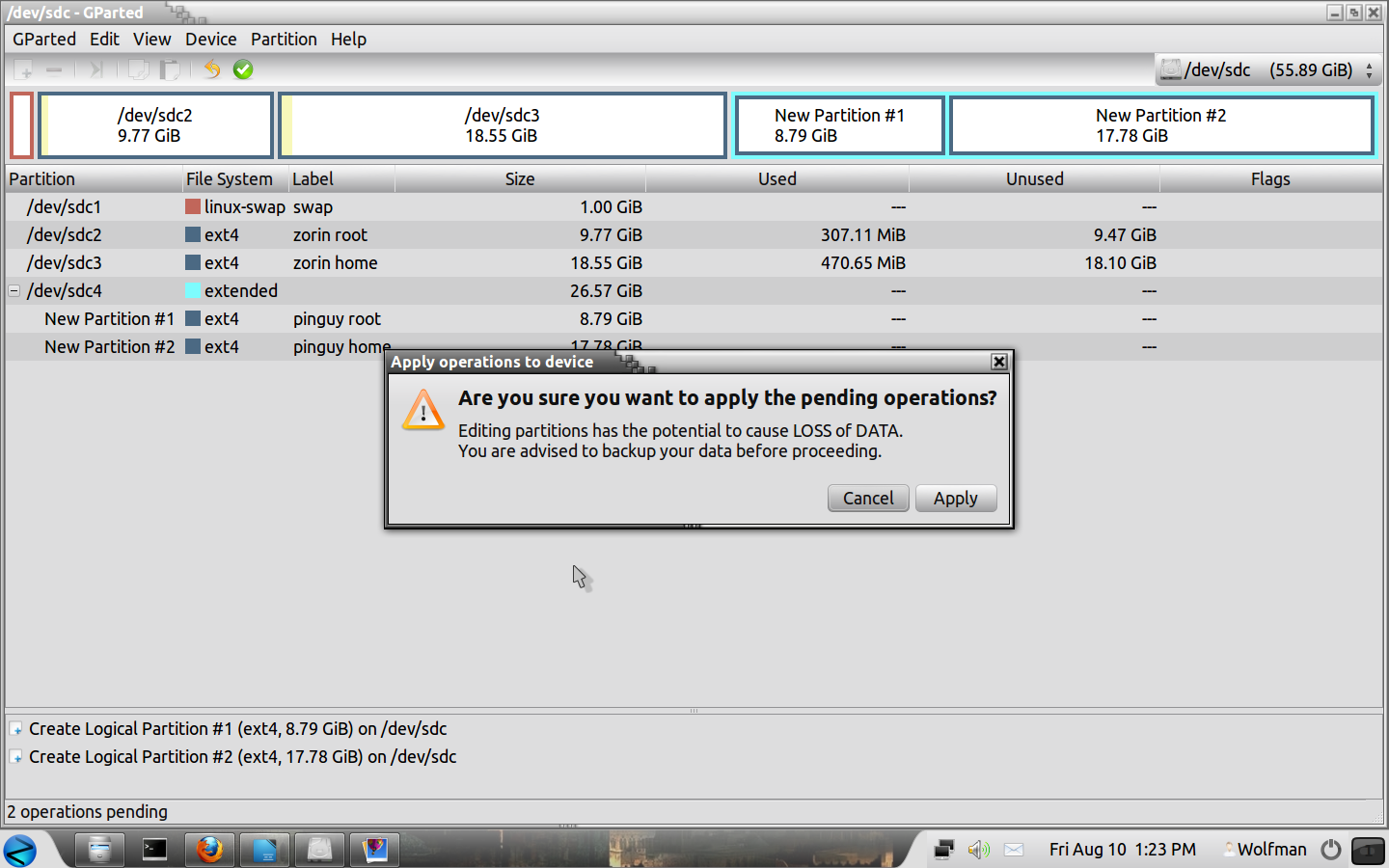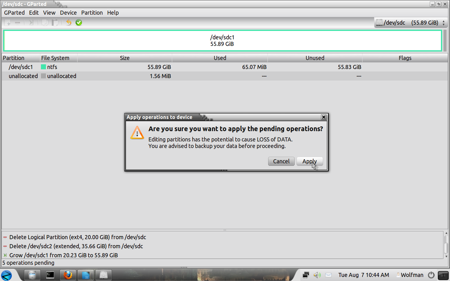 Click on “Apply” when you want to finish the operations you have selected, be sure that everything is correct!!.