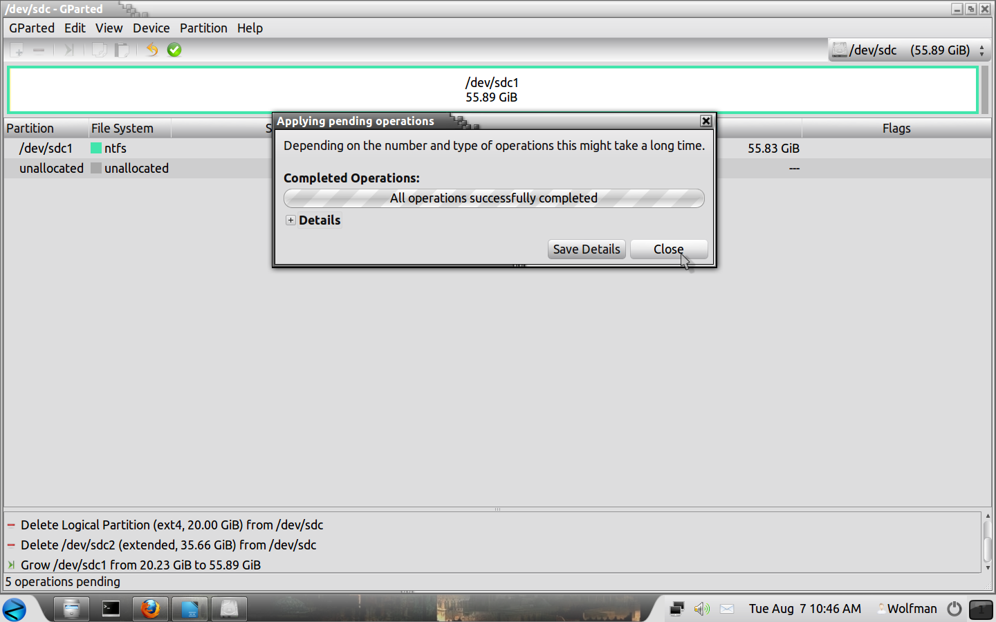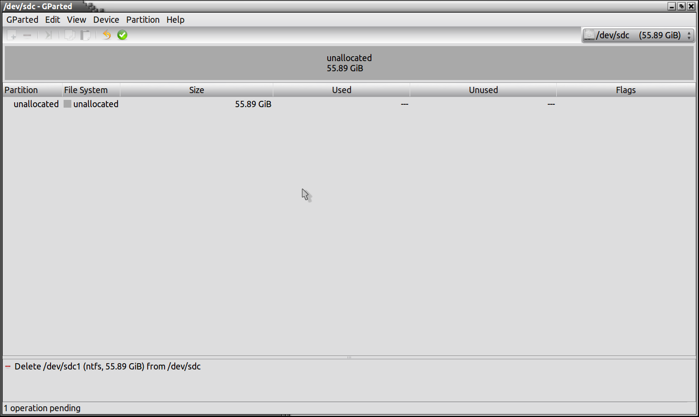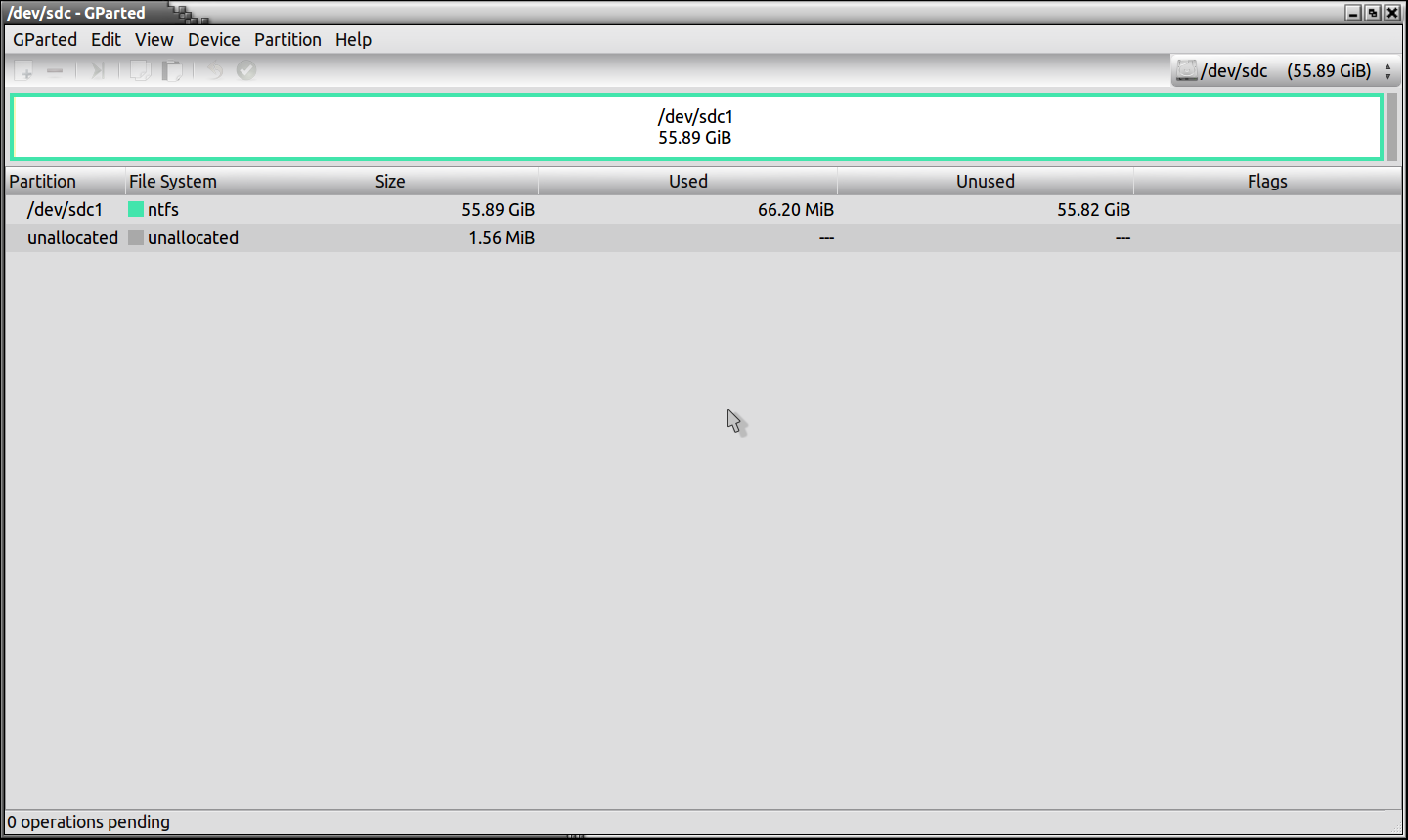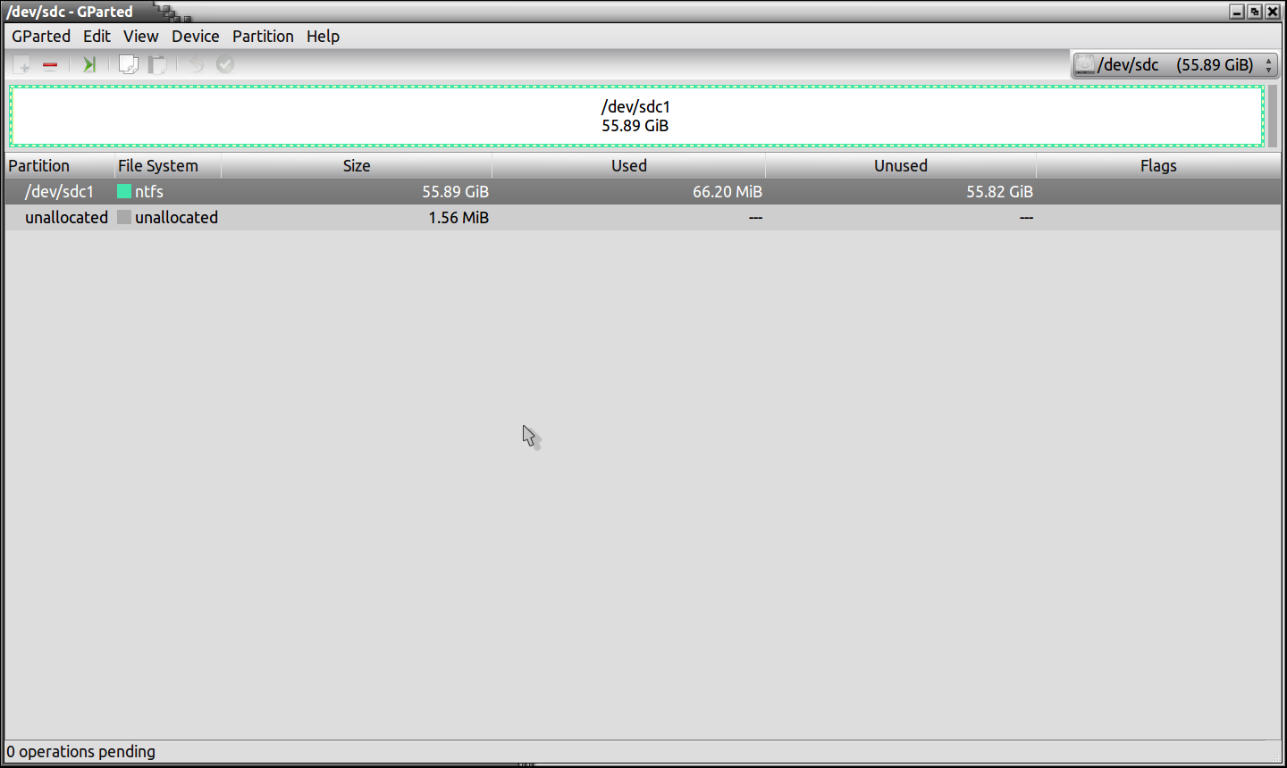 The second pic is of my external drive which I am going to use for this tutorial, it is labeled “/dev/sdc. As you can see from this pic, it is formatted to the “NTFS” format which is normal for Windows XP/2000/Vista/Windows7.