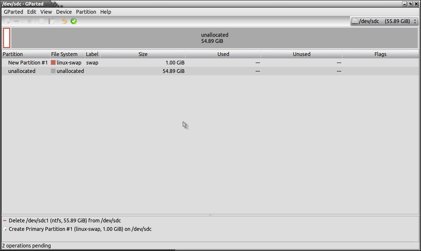 Now you have created your swap partition, you should have this in front of you.