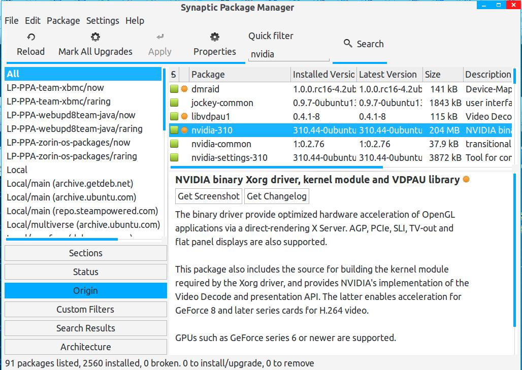 3. Search for '310' drivers (long time to download - 67 Mb) plus the 'nvidia settings'